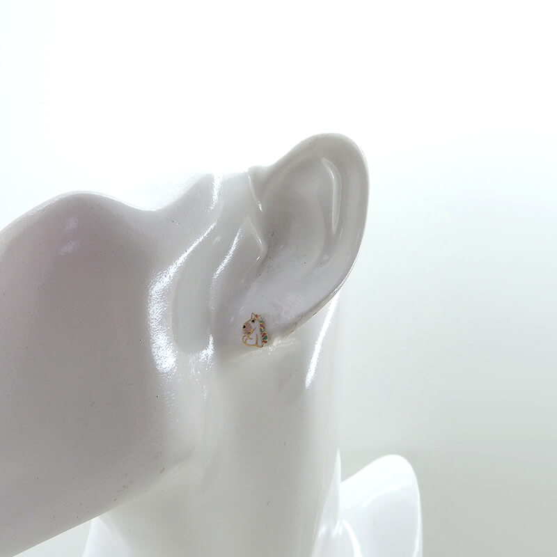 Pendientes unicornio esmaltado medida 8mm, cierre de rosca oro 18k