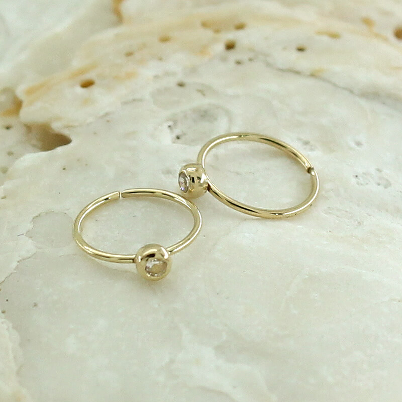Piercing de oreja y septum de nariz en aro con circonita oro 18k