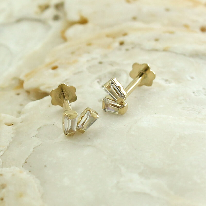 Piercings de oreja y nariz con circonitas de 3x2mm.