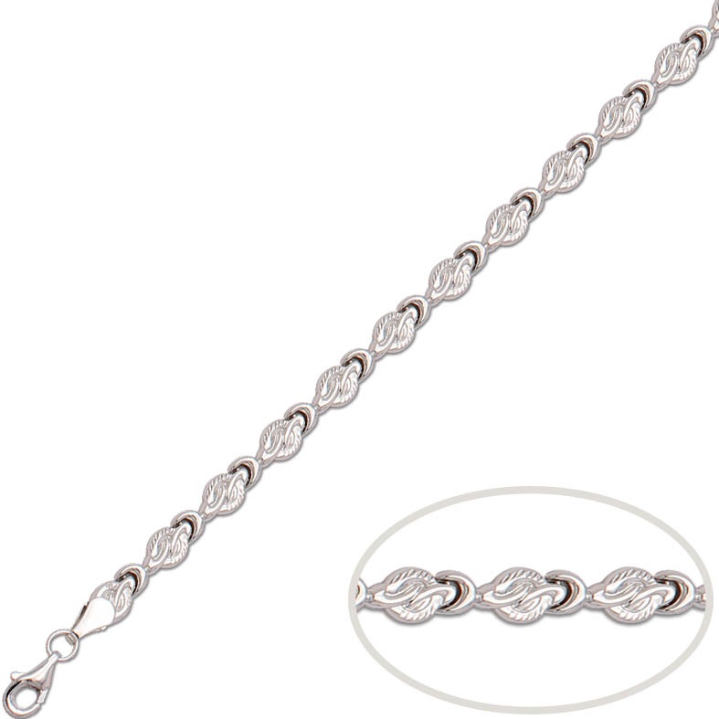 Pulsera de eslabones con terminacion en brillo espejo y tallado de 5mm.de ancho y 19cm de largo con cierre de mosqueton en oro blanco de 18k