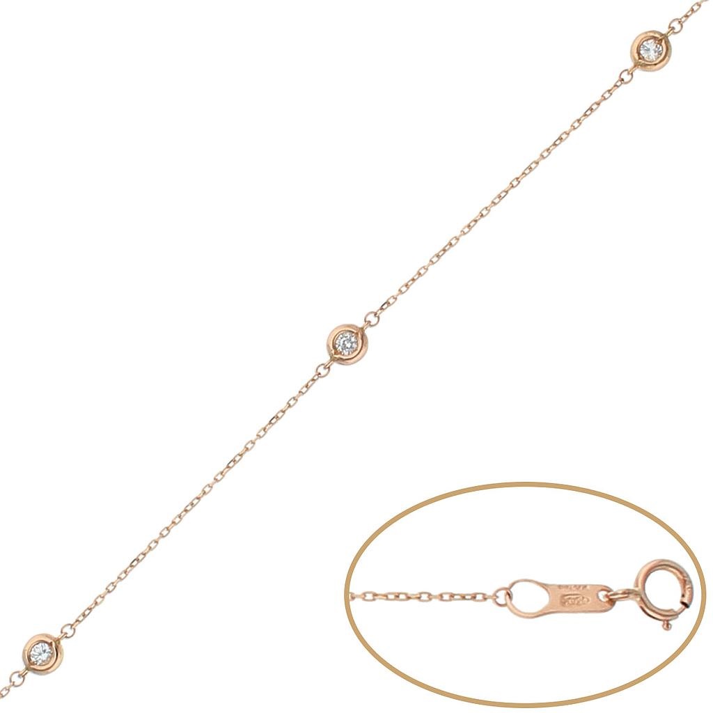 Pulsera de cadena fina de 0,5mm. y chatones de 4mm.con circonitas,terminacion en brillo y 17cm.a 19cm.de largo en oro amarillo de 18k