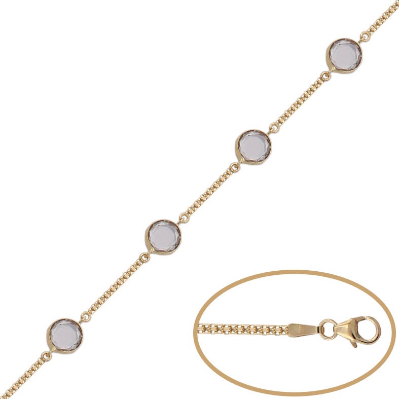 Pulsera de cadena modelo bismark de 2mm.de ancho y circonitas redondas de 9mm.de ancho, longitud de 19,50cm.en oro amarillo de 18k