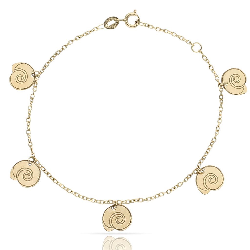 Pulsera mini charms caracolas en oro de 18k