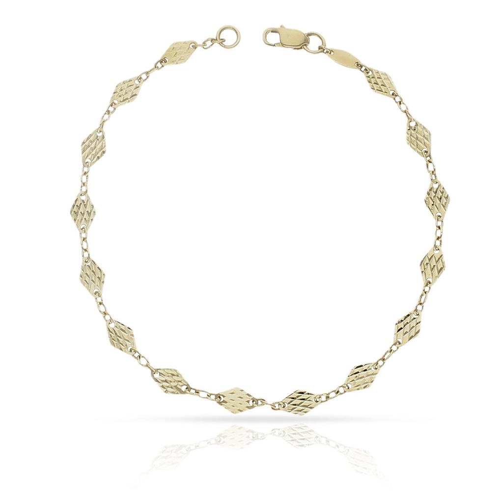 Pulsera con chapas en forma de rombo talladas de 4.50mm.de ancho con acabado en brillo espejo y a 19cm.de largo en oro amarillo de 18k