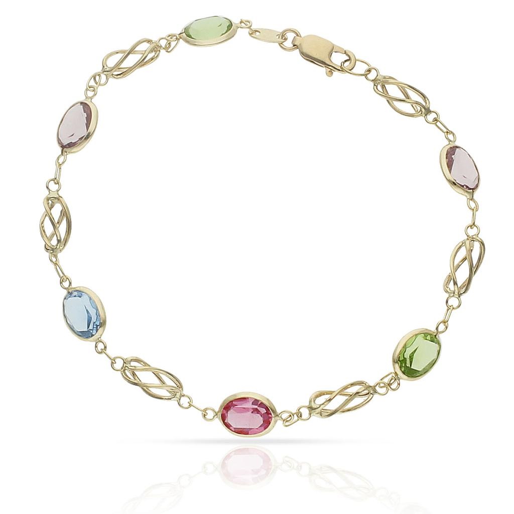 Pulsera tutti fruti (piedras ovaladas de distintos colores) y jaula a 20cm.de longitud y cierre de mosqueton en oro amarillo de 18k