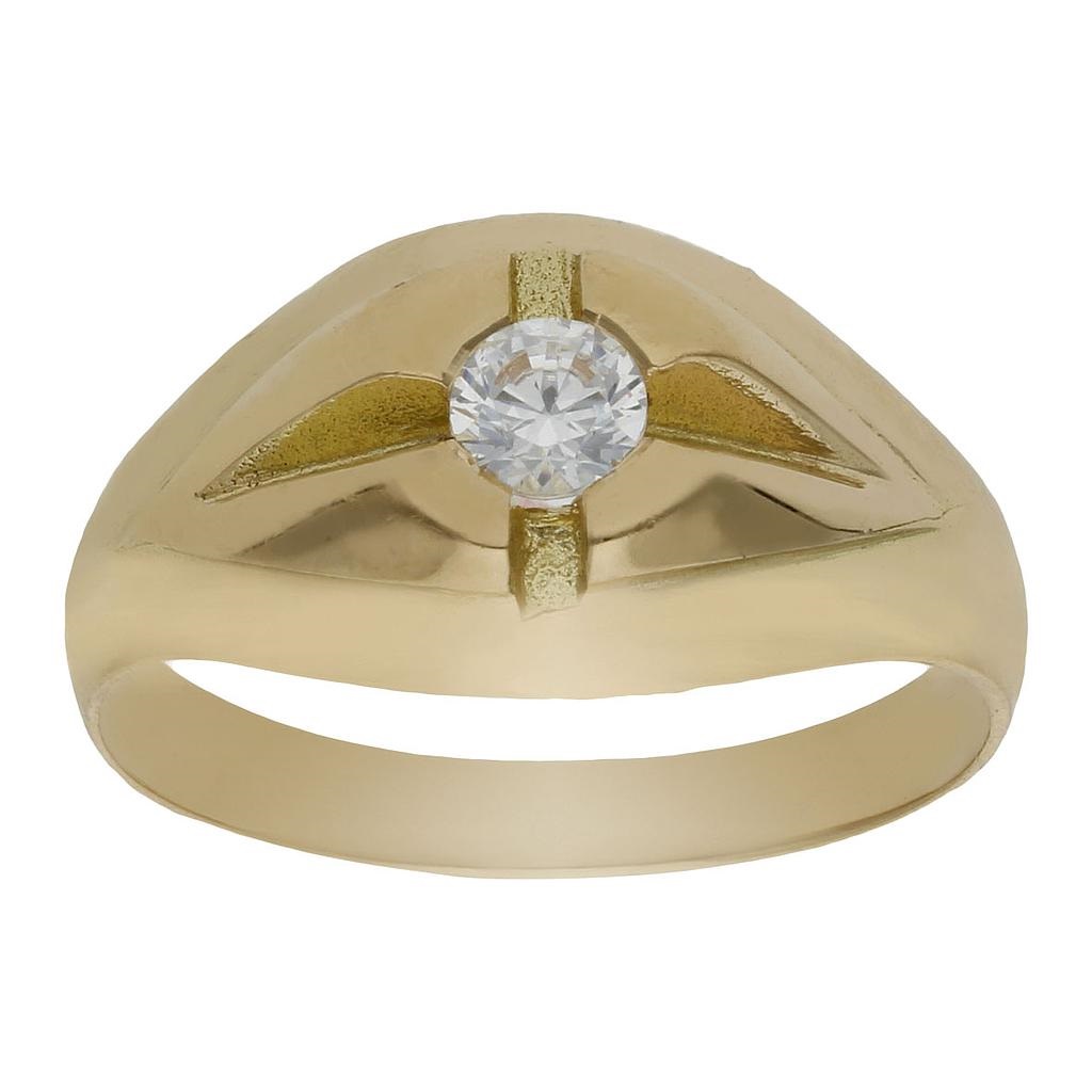 Solitario con circonita tallado en brillo espejo y mate con Interior sin forrar en oro amarillo de 18k