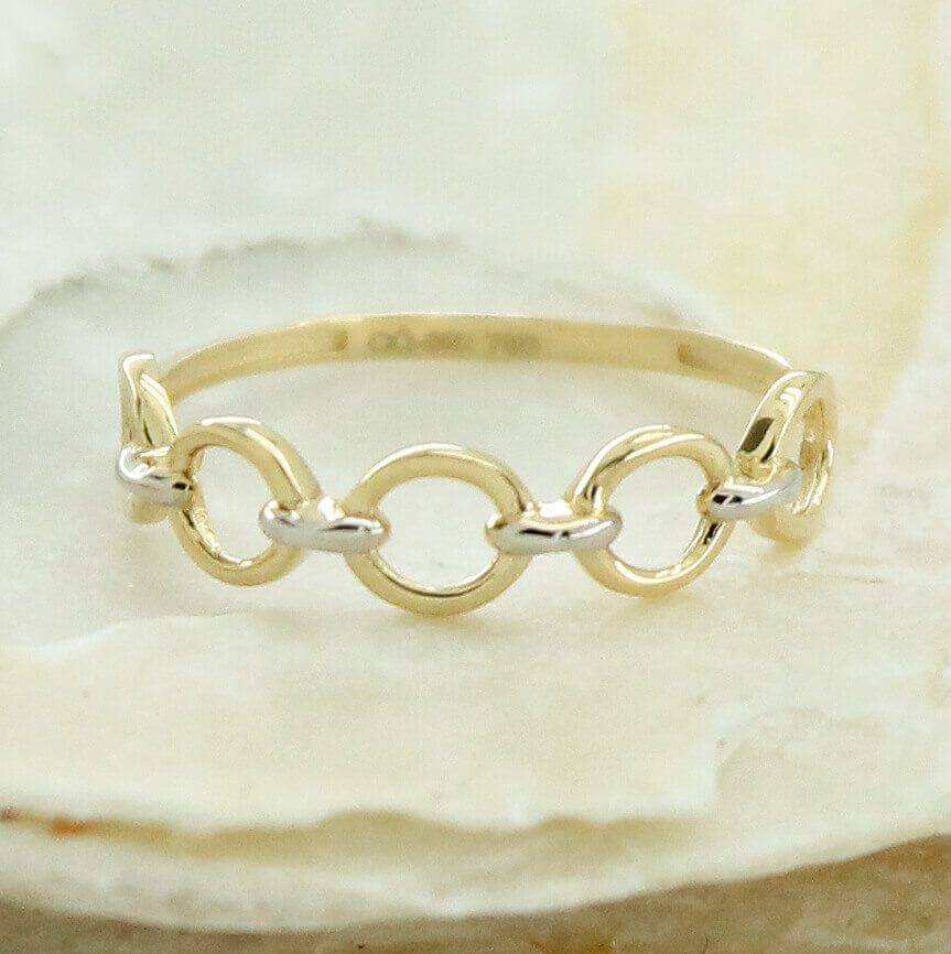 Sortija mujer eslabones bicolor brillo liso medida cabeza de 4’5mm,cuerpo de 1’5mm.oro 18k