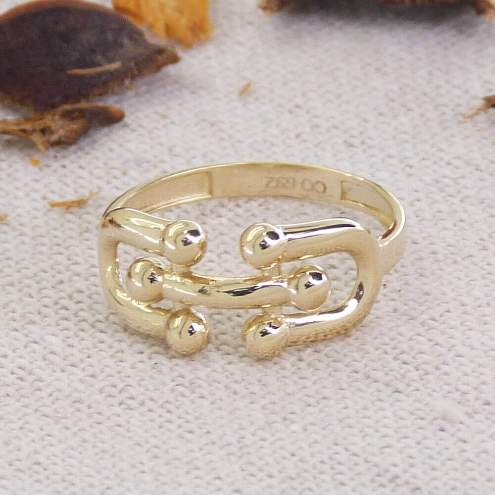 Anillo eslabones y bolas brillo liso oro 18k