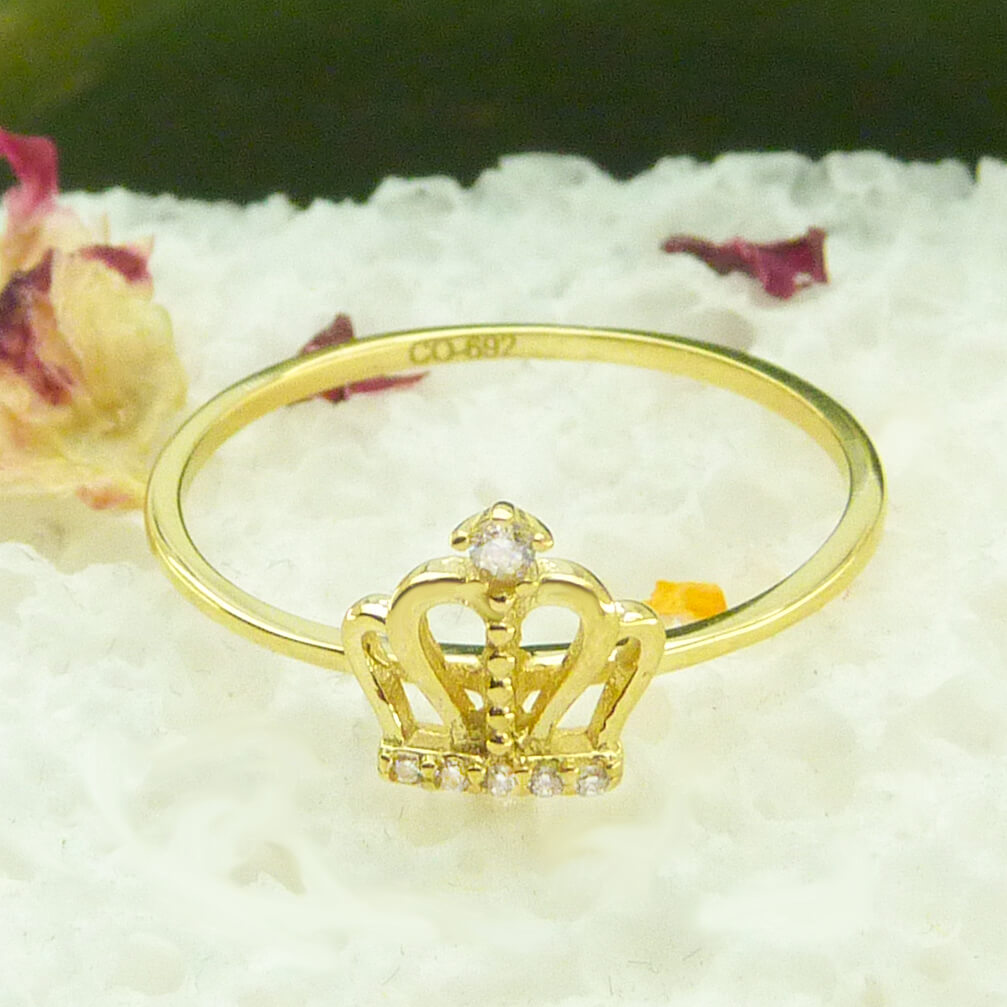 Anillo brillo liso con motivo de corona y circonitas oro amarillo de 18k