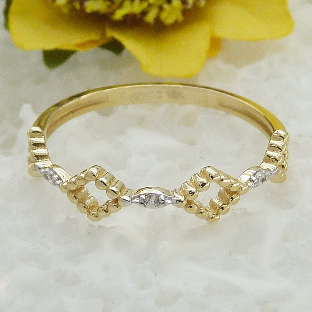 Anillo rombos brillo y circonitas bicolor oro 18k