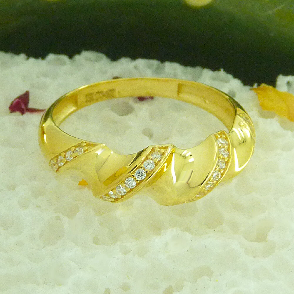 Anillo trenzado brillo con circonitas oro 18k